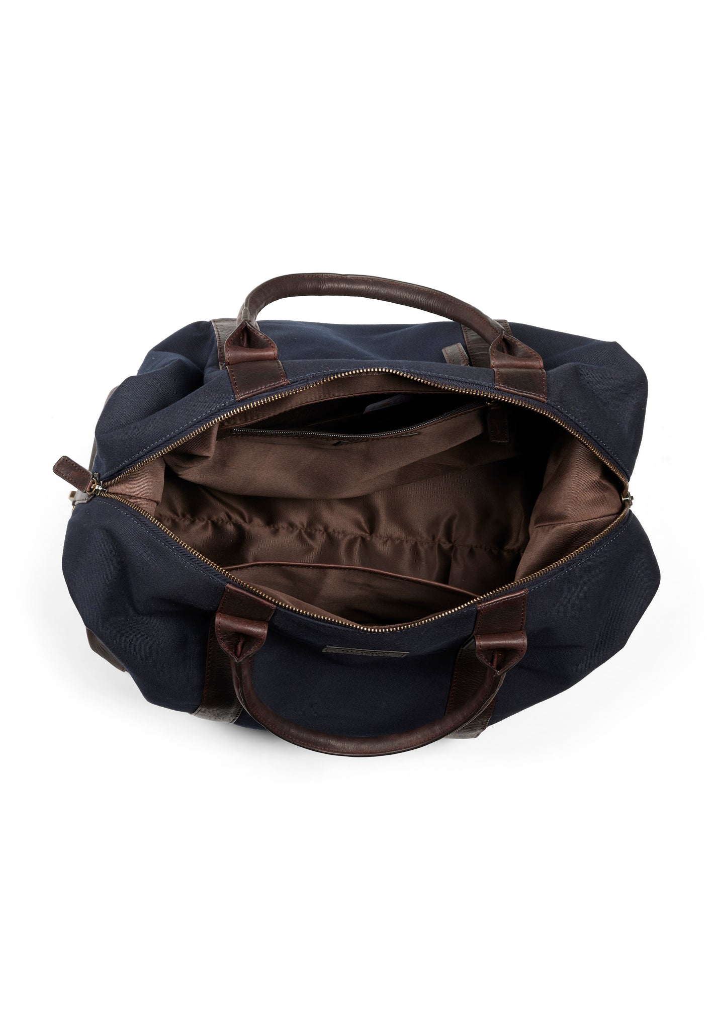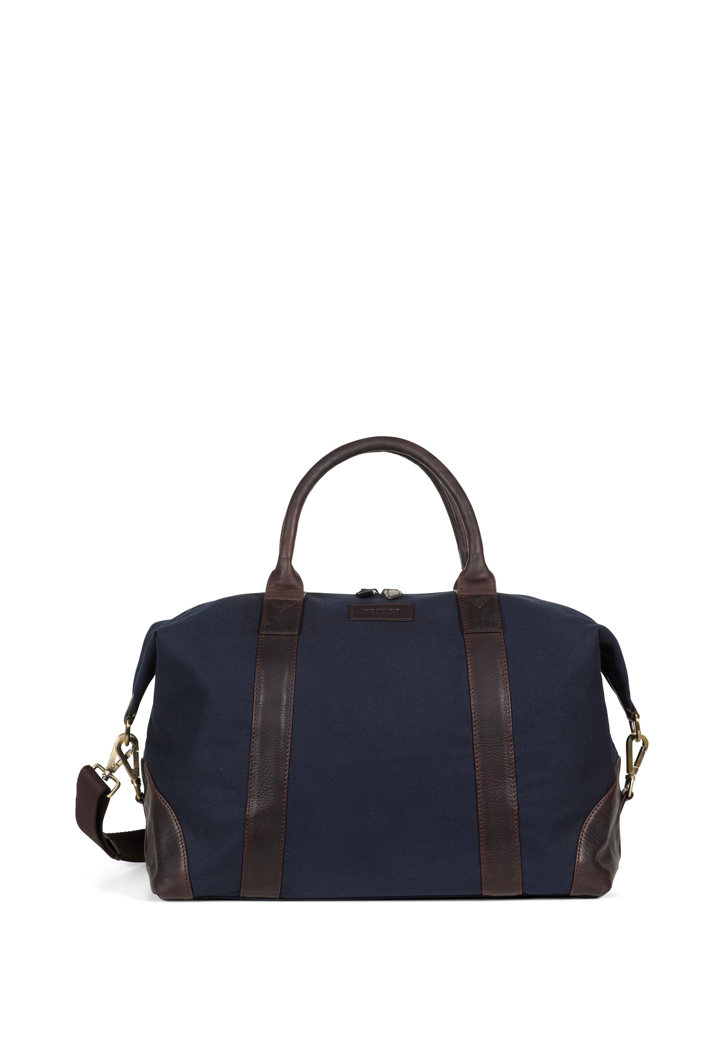 Colour: Navy blue canvas with brown leather details